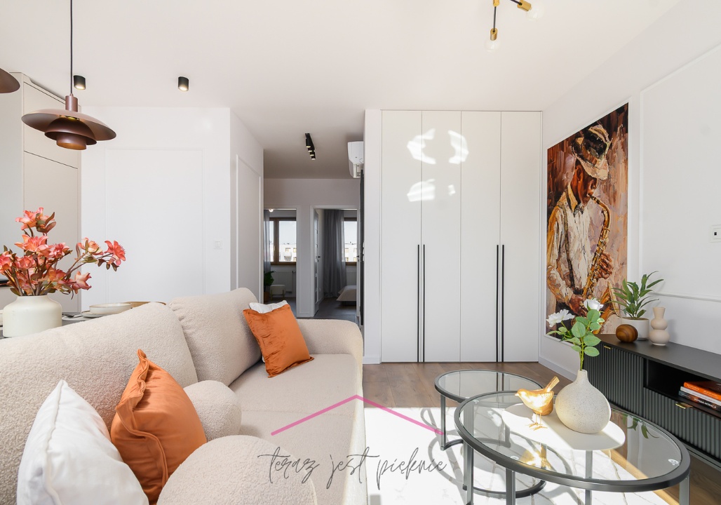 Mieszkanie jest po generalnym remoncie, zaprojektowane przez projektanta wnętrz.