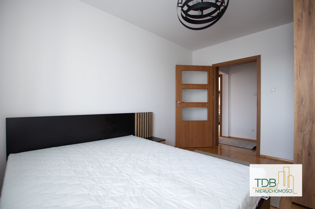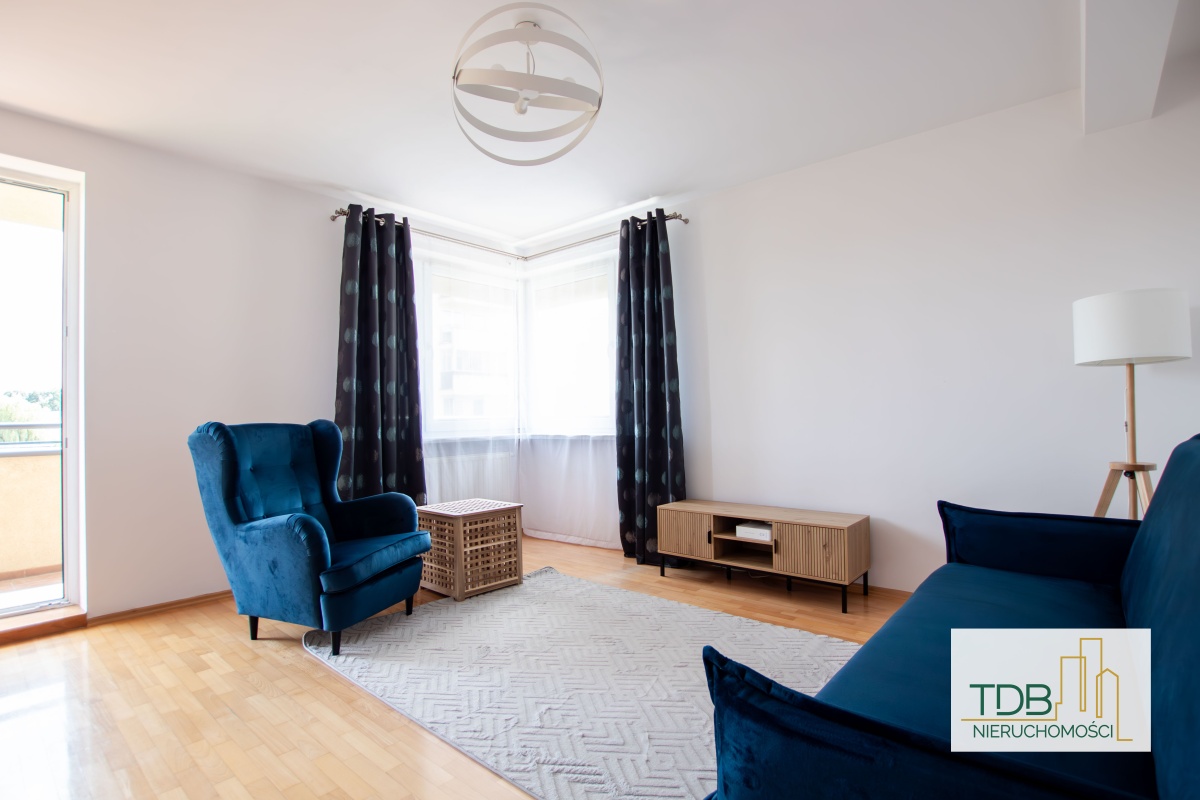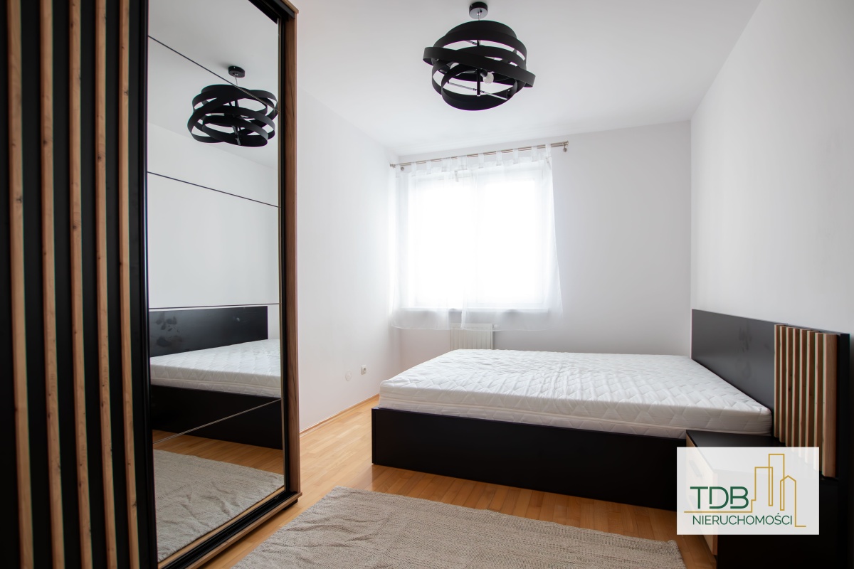 Mieszkanie jest składa się z salonu z dostępem do dużego narożnego balkonu, sypialni, osobnej jasnej kuchni, łazienki z wanną oraz korytarza. Wszystkie pomieszczenia są w pełni wyposażone w niezbędne meble (w większości nowe), widoczne na zdjęciach oraz sprzęty AGD (lodówka, kuchenka, piekarnik, okap, kuchenka mikrofalowa, czajnik elektryczny, pralka, odkurzacz, żelazko). Ogrzewanie centralne. W mieszkaniu działa szybki internet. Mieszkanie jest ciche i jasne. Istnieje możliwość bezpłatnego parkowania pod budynkiem. W mieszkaniu obowiązuje zakaz posiadania zwierząt.