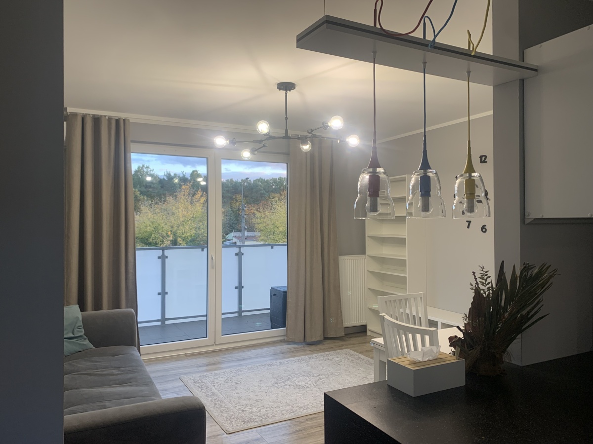 Wynajmę ciche, słoneczne i przytulne, dwupokojowe, umeblowane mieszkanie o powierzchni 45,90 m² wraz z balkonem (7,61 m2) i miejscem postojowym (26,73 m2) w garażu podziemnym.