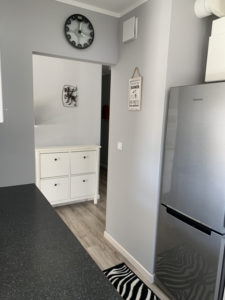 Zostało urządzone z dbałością o wygodę i funkcjonalność. Jest po remoncie, umeblowane i wyposażone w potrzebne sprzęty domowe (widoczne na zdjęciach). Jest dużo miejsca do przechowywania: duże szafy w przedpokoju wraz przestrzenią do schowania wysokich rzeczy (takich jak deska do prasowania, mop czy suszarka) i bardzo duża garderoba w sypialni.