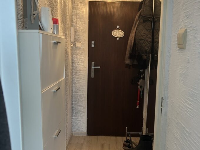 Mieszkanie jest po odświeżeniu i składa się z salonu, sypialni z balkonem, osobnej kuchni, łazienki oraz przedpokoju. Układ pomieszczeń jest funkcjonalny i zapewnia komfort codziennego użytkowania. Lokal ma ekspozycję na dwie strony świata: salon na północny-zachód, a sypialnia oraz kuchnia na południowy-wschód, co zapewnia dobre doświetlenie wnętrz. Mieszkanie jest w pełni umeblowane, przy czym większość mebli oraz część sprzętów jest nowa. Na podłogach znajduje się parkiet, a ogrzewanie jest miejskie. Wyposażenie obejmuje m.in. pralkę, kuchenkę gazową, piekarnik oraz lodówkę. Lokal jest gotowy do zamieszkania bez dodatkowych nakładów. Istnieje możliwość podłączenia internetu we własnym zakresie. Mieszkańcy mają możliwość parkowania samochodu na podwórzu, za bramą wjazdową, wyłącznie do użytku mieszkańców. Do mieszkania przynależy komórka lokatorska. Obowiązuje zakaz posiadania zwierząt.