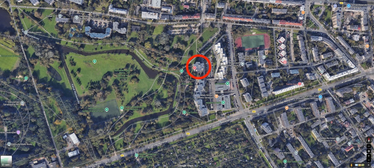 Budynek znajduje się tuż przy wejściu na Kamionkowskie Błonia Elekcyjne z dużym placem zabaw, kortami tenisowymi i stołem do ping-ponga na terenie osiedla.