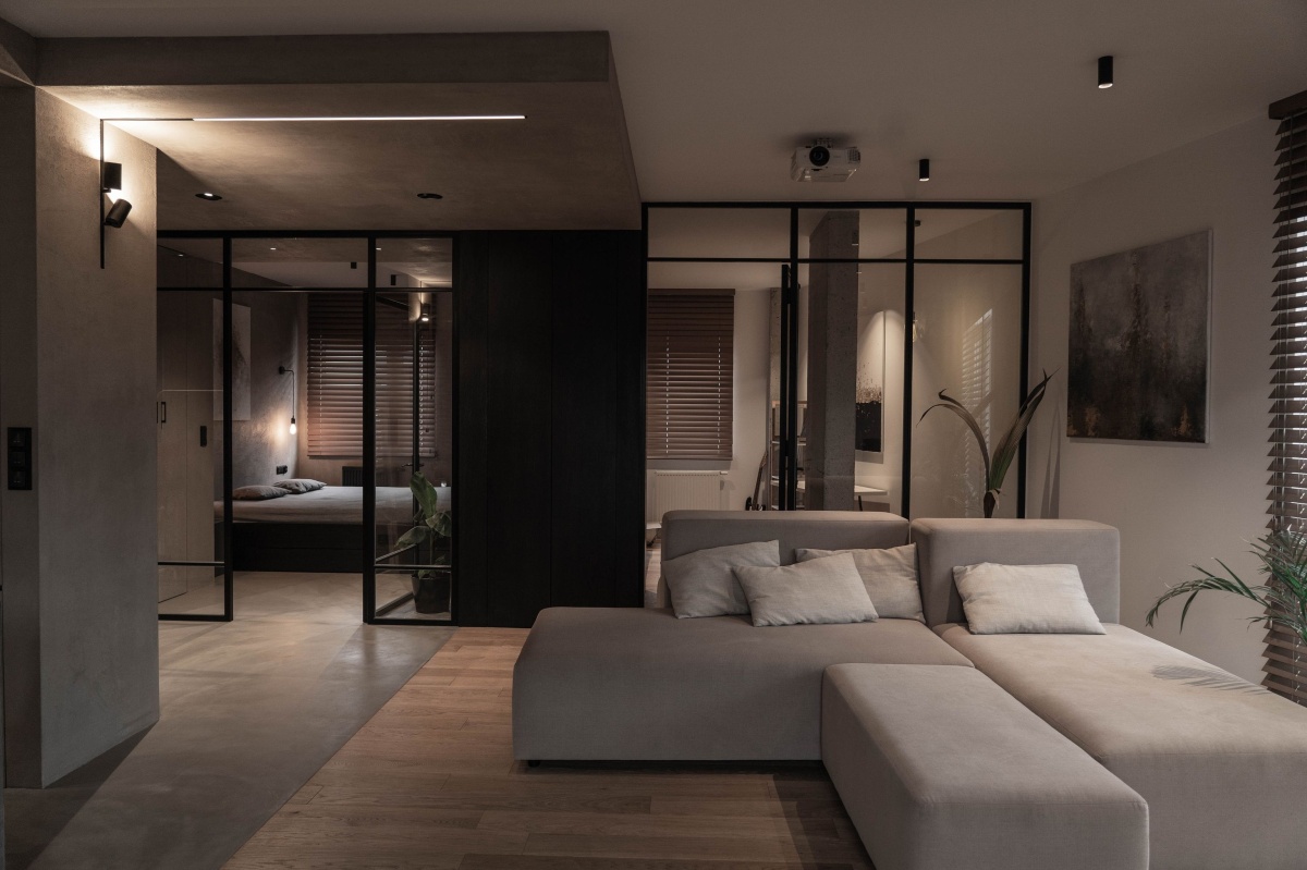 Wnętrze opracowane przez architektów zachwyca industrialnym charakterem, spójnością i elegancją minimalizmu.