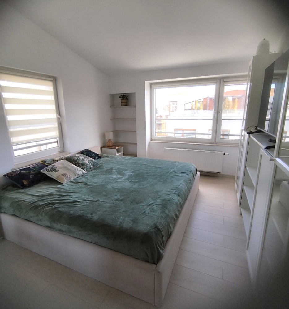 • Sypialnia: Sypialnia z dużym i wygodnym dwuosobowym łóżkiem. Ekspozycja północno-wschodnia Wysokość do 310 cm.