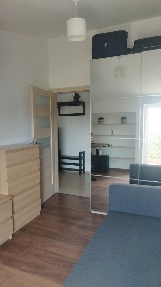 – Podłogi: panele w pokojach i korytarzu, płytki w łazience oraz aneksie kuchennym.