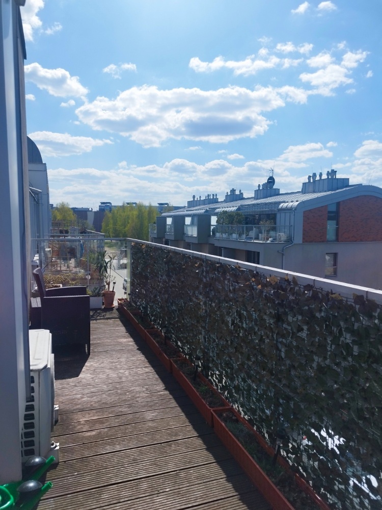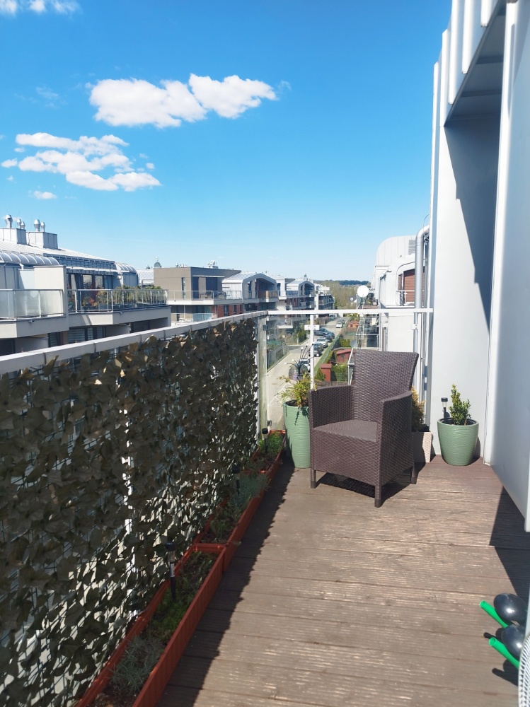 • Duży balkon wykończony panelami kompozytowymi.