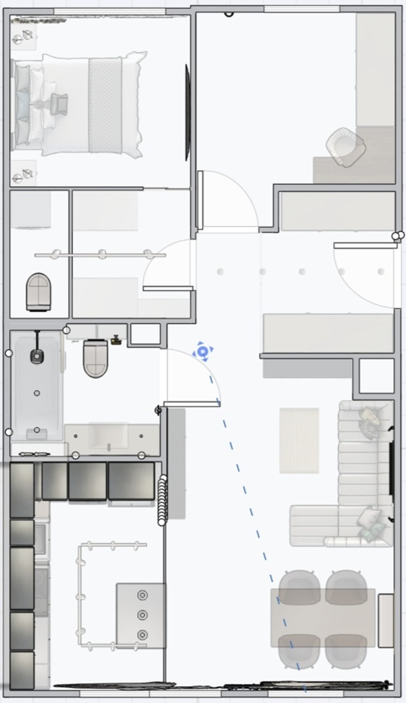 Mieszkanie ponadto zostało wyposażone w ultra cichą klimatyzację, którą również obsłużymy pilotem jak i smartfonem.