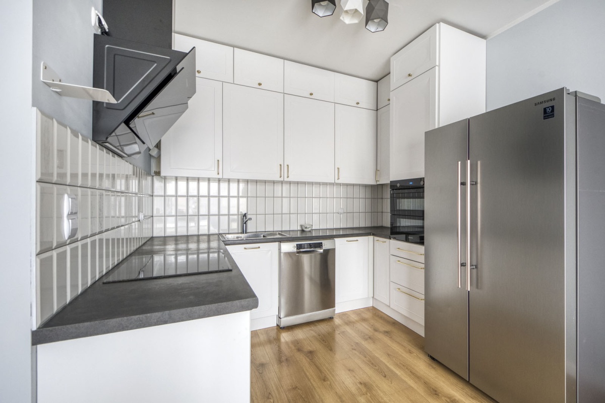 – Salonu z aneksem wyposażonym w markowy sprzęt AGD (piekarnik, lodówkę Side by Side, dużą zmywarkę, płytę indukcyjną, okap);