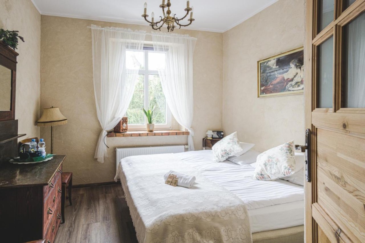 – pokoje gościnne (każdy posiada własną łazienkę, aktualnie istnieje możliwośc zakwaterowania 26 osób + 4 dostawki, docelowo mogą być 33. miejsca noclegowe + 4 dostawki.