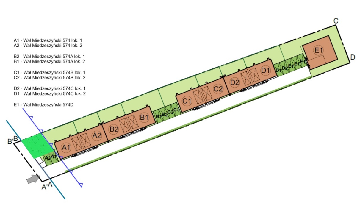 2 domów w zabudowie bliźniaczej po 4 lokale 3 kondygnacyjne w każdym oraz dom jednorodzinny wolnostojący