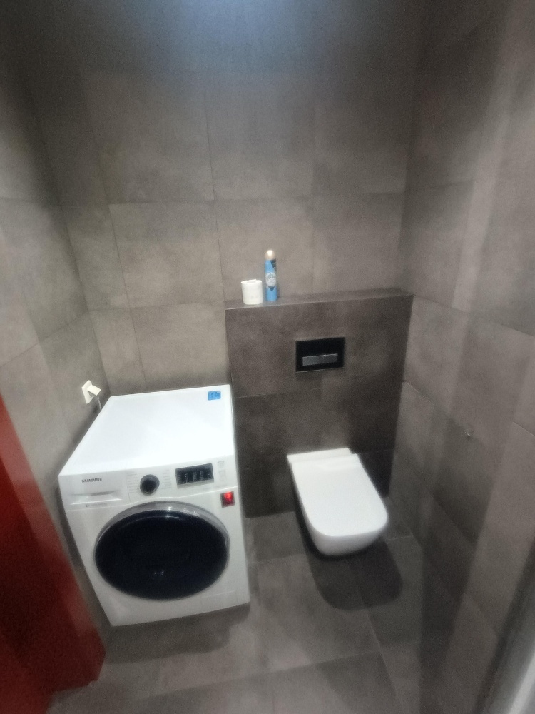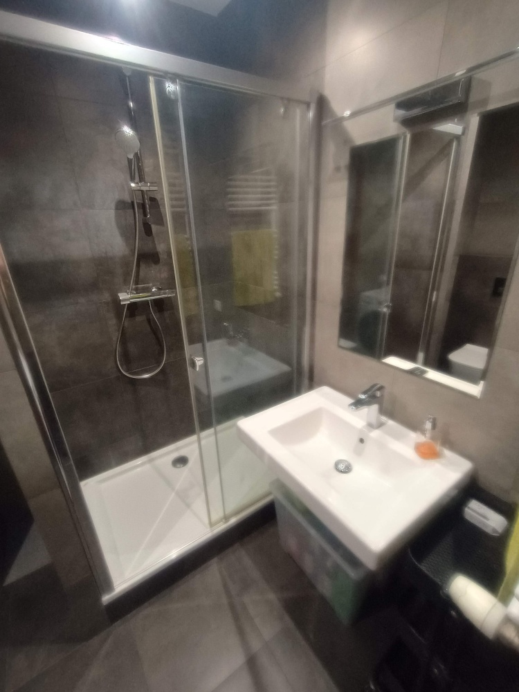 – łazienka: prysznic (80×120), pralko-suszarka, umywalka i WC.