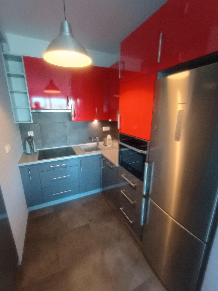– aneks kuchenny: płyta indukcyjna, piekarnik z funkcją mikrofali, lodówka, zmywarka, czajnik elektryczny, okap.
