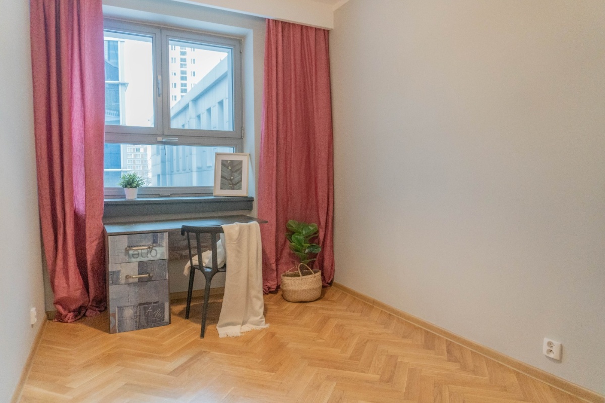 Pomimo centrum Warszawy w mieszkaniu jest bardzo cicho. Niestandardowa wysokość pomieszczeń 2,7 m daje poczucie prawdziwej przestrzeni w sercu miasta.