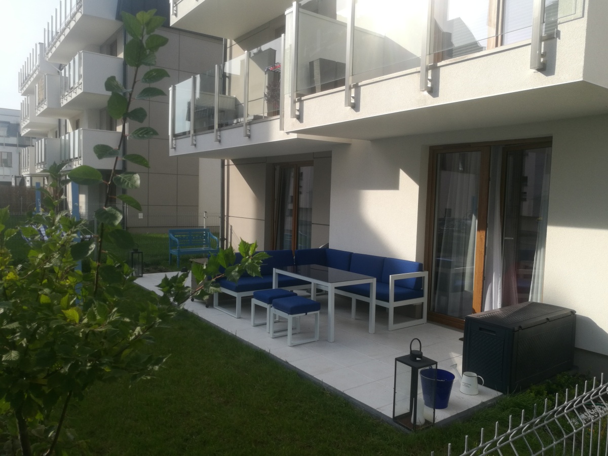 Oferujemy do wynajęcia śliczny, 2-pok. apartament z dużym ogrodem i miejscem postojowym. Apartament ma metraż 45,6m2 zaś na 46m2 ogrodzie znajduje się 20m2 taras zrobiony z płytek kamiennych. Apartament mieści się niecałe 2km od ul. Opolskiej, jednej z głównych arterii komunikacyjnych miasta, 2,3km do Parka Krowoderskiego, 3km do Galerii Bronowice, 6,9km do Rynku Głównego w dynamicznie rozwijającej się północnej części Krakowa. Sąsiedztwo osiedla stanowi luźna zabudowa domów jednorodzinnych oraz niskich domów wielorodzinnych. Lokalizację docenią osoby ceniące spokój oraz pragnące uniknąć wielkomiejskiego smogu ponieważ otoczenie pozostanie niezabudowane wg wytycznych korytarza powietrznego Krakowa. Na wygodę lokalizacji wpływa również bliskość sklepu Lewiatan, piekarni, sklepu z warzywami. Zarówno apartament jak i budynek jest nowy i jest kameralnym obiektem o efektownej architekturze oraz nowoczesnych wnętrzach. Prezentowany apartament składa się z salonu z aneksem kuchennym, sypialni, łazienki, przestronnego korytarza, z dużego ogrodu oraz miejsca postojowego. Apartament jest w pełni wykończony materiałami i urządzeniami najwyższej klasy, umeblowany i w pełni gotowy do zamieszkania, czeka na lokatora 😉 Urządzony jest w klimatycznym stylu połączenie glamour i retro, w kolorystyce czarno białej przełamane czerwonymi elementami z wieloma praktycznymi dodatkami. Kuchnia zrobiona na zamówienie z naturalnymi granitowymi blatami oraz praktycznym mini bufetem. Kuchnia bardzo funkcjonalna wyposażona w lodówkę, płytę indukcyjną, piekarnik, okap – wszystko firmy SMEG wraz z drobnymi agd takim jak czajnik, toster, ekspres ciśnieniowy. Ława oraz stół marki Bella Casa posiadają blaty z czarnego granitu, zestaw pięknych welurowych krzeseł Glamour Luxury Black. W salonie zestaw mebli fornirowanych firmy Mikołajczyk z podświetlanym panelem RTV oraz z wiszącymi witrynkami wraz z przepięknym, bardzo pojemnym barkiem. Sofa retro marki BFM, krzesło barowe Ton, telewizor Sony 50”. Niezaprzeczalnym atutem tego apartamentu jest miejsce do rekreacji i wypoczynku 46m2 ogrodu wraz z 20m2 tarasem. Ogród wraz z tarasem są w pełni umeblowane zestawem wypoczynkowych mebli aluminiowych, urokliwą ławeczką ogrodową w kolorze błękitu oraz bardzo wygodnym fotelem z naturalnego rattanu. Kompozycja ogrodu tuje, drzewka migdałowiec, liliak, krzew liliak, magnolie, azalie, trzmielinki, rododendrony, róże, wrzosy, bukszpan, hortensje, ogród wyposażony jest również oświetlenie ogrodowe – lampy solarne i zestawy lampionów oraz skrzynie ogrodowe na kosiarki. Apartament wyposażone jest kompleksowo we wszystkie niezbędne rzeczy typu naczynia, sztućce, garnki, akcesoria kuchenne, odkurzacz Miele, robot mopujący iRobot, pościel, ręczniki, żelazko Tefal. Do wykończenia tego apartamentu zostały użyte najlepsze materiały, hiszpańskie czarno białe płytki oktagonalne w stylu pałacowym, na ścianach w łazience i korytarzu płytki Tubądzin Royal Palace wraz z listwami Tubądzin by Maciej Zień Palazzo, drewniana podłoga z drewna egzotycznego Jatoba, na zamówienie meble kuchenne, biblioteczka, meble łazienkowe, drzwi. Użycie urządzeń i mebli takich marek jak Smeg, KitchenAid, Miloo Home, Miele, iRobot, Mikołajczyk, Milemison, Bella Casa czy Eichholtz niewątpliwie gwarantuje przyjemność z komfortowego użytkowania apartamentu jak i nadają mu niepodważalny szyk i urok miejsca wyjątkowego. Wiele z tych rzeczy kupionych w Amsterdamie, Brukseli i Paryżu. Cena 2 950 PLN/miesiąc – cena do lekkiej negocjacji. Możliwość wynajęcia miejsca postojowego w cenie 200PLN na miesiąc. Po stronie najemcy jest regulowanie należności do administracji (woda, śmieci, opłaty za części wspólne – w tej chwili to ok 265 PLN/miesiąc), prąd oraz gaz (mieszkanie posiada ogrzewanie gazowe z niezależnym licznikiem gazu). Kaucja 4 000PLN. Zapraszamy do kontaktu, obejrzenia i rozpoczęcia mieszkania w pięknym miejscu 😉