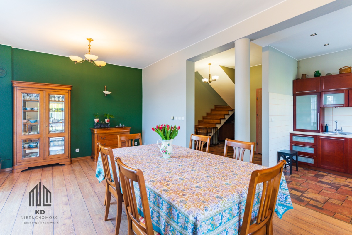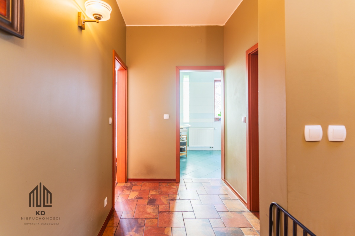 Dwie działki o łącznej powierzchni 1415 m² stanowią dodatkowy atut – nieruchomość doskonale sprawdzi się nie tylko jako komfortowy dom rodzinny, ale również jako siedziba firmy, kancelaria, biuro lub inwestycja.