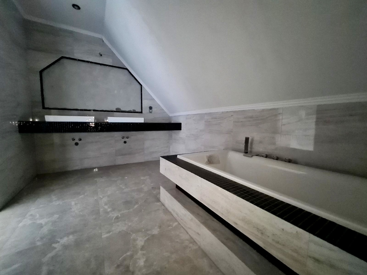 W kotłowni, łazience oraz toalecie na poddaszu zarówno na ścianach, jaki i podłodze położone zostały płytki ceramiczne wysokiej jakości. Również schody prowadzące na poddasze obłożono płytkami ceramicznymi, ponadto ściana przy schodach ozdobiona została tynkiem dekoracyjnym wpisującym się w nowoczesne trendy.