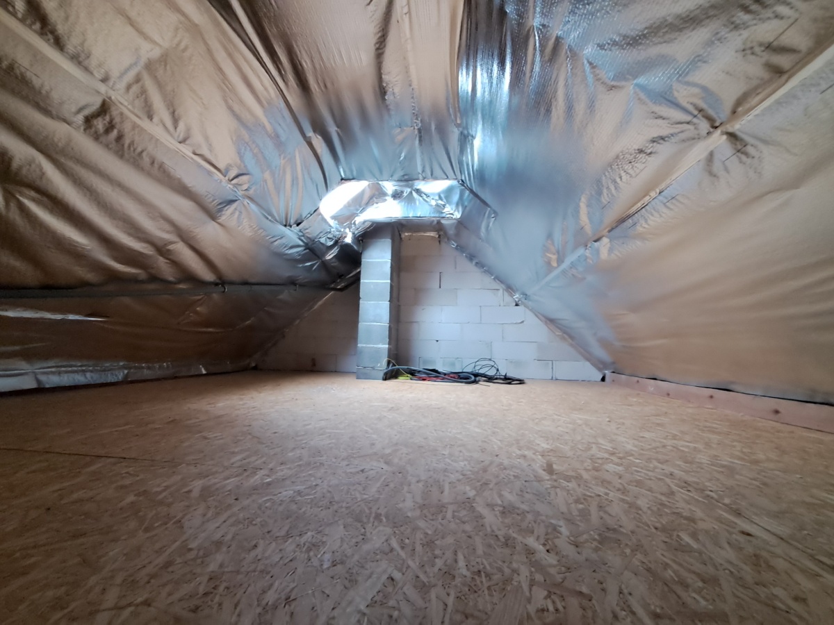 Poddasze ocieplone jest 25 cm wełną + dodatkowo ocieplone wełną zostały kalenice (grubość wełny 15cm).