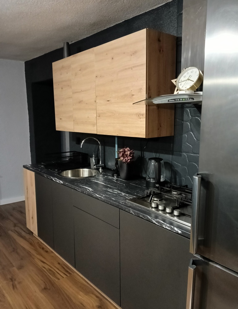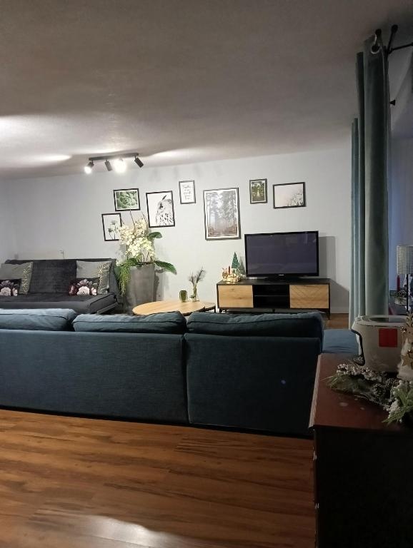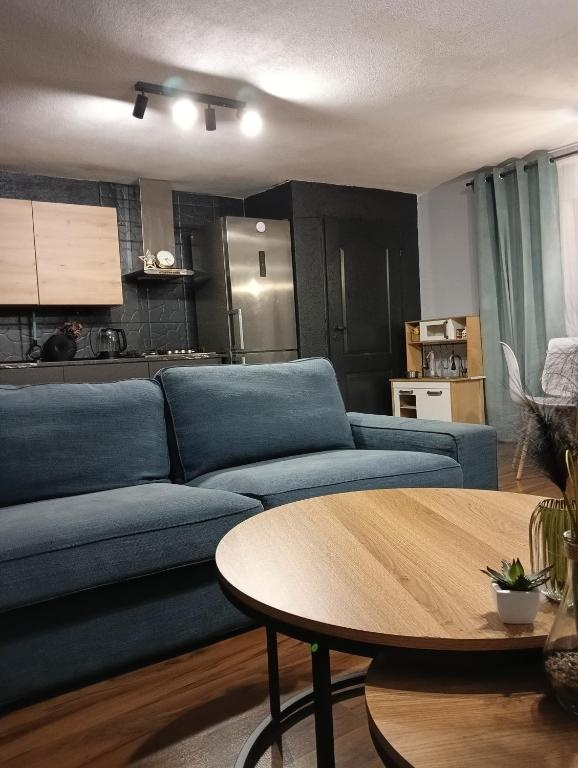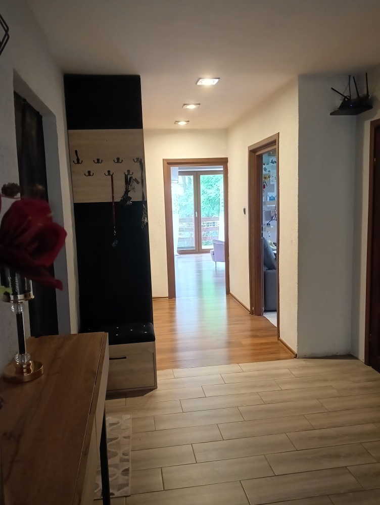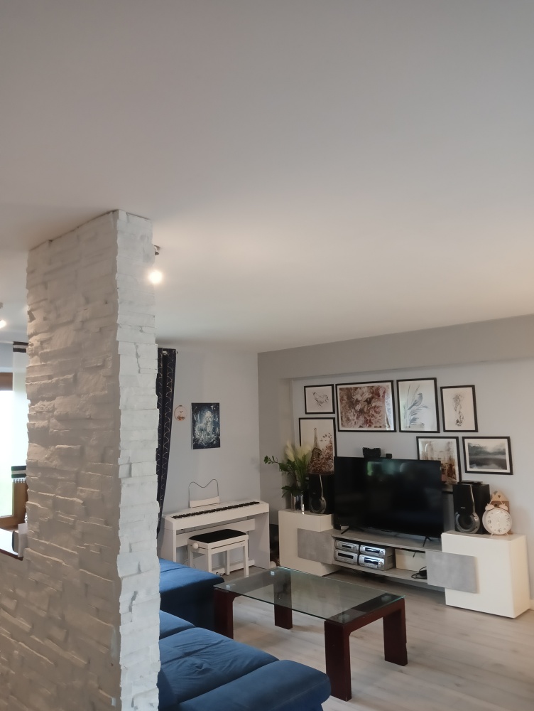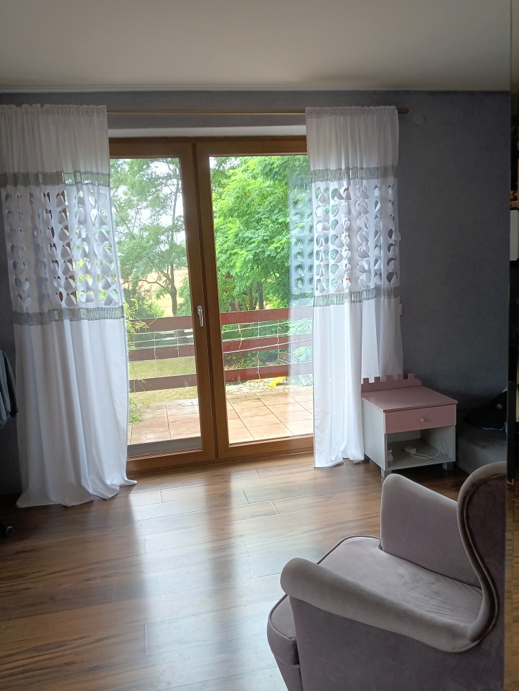 przestronny salon z otwartą kuchnią, przedpokój, łazienka z prysznicem, dwie duże sypialnie .