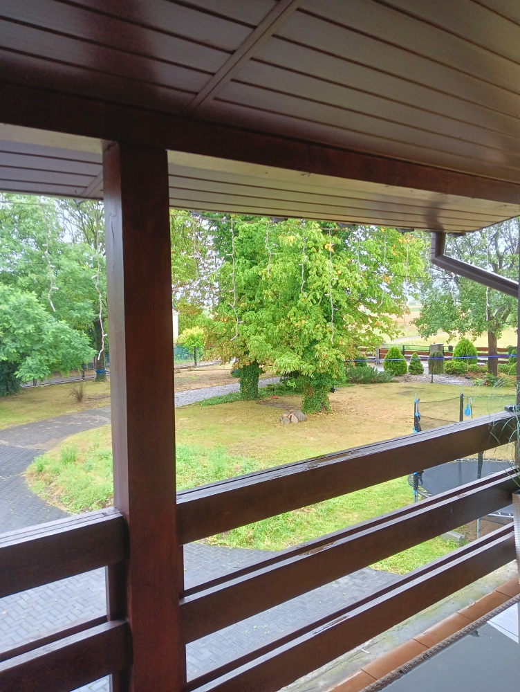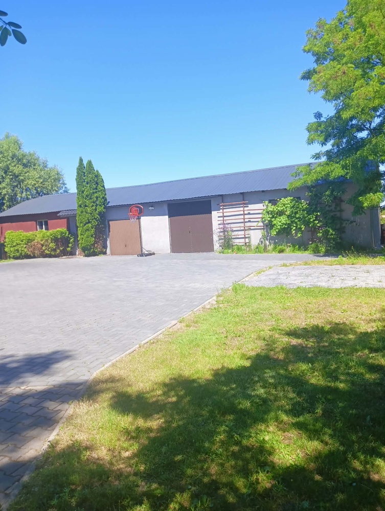 Na zewnątrz mamy budynek gospodarczy 160mkw, murowany dach pokryty blachą w 2024r. w którym mamy trzy miejsca parkingowe, pomieszczenia socjalne, a także pomieszczenie mieszkalne.