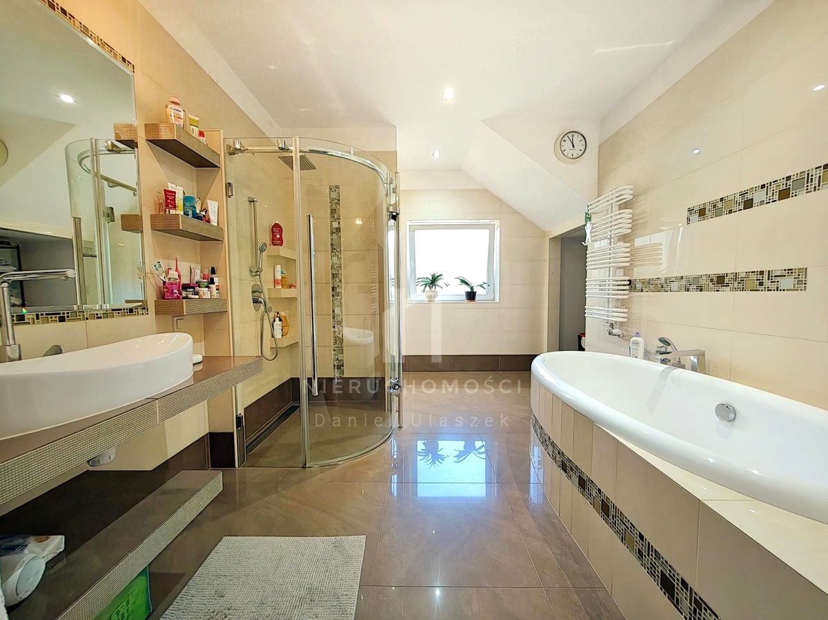– dużą łazienkę z wanną, prysznicem i toaletą,