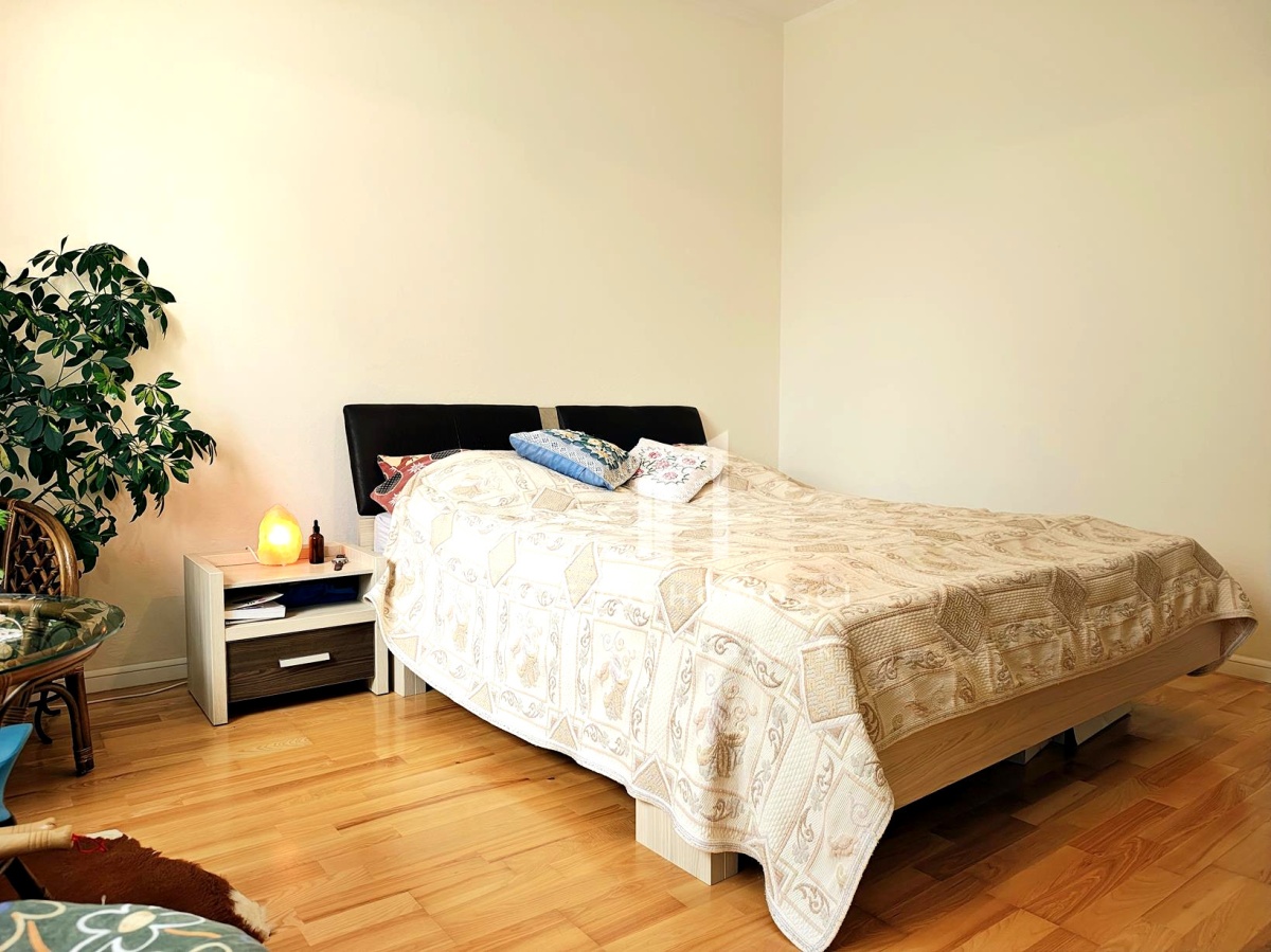 – jasną główną sypialnię z pakowną szafą i wyjściem na balkon z podcieniem,