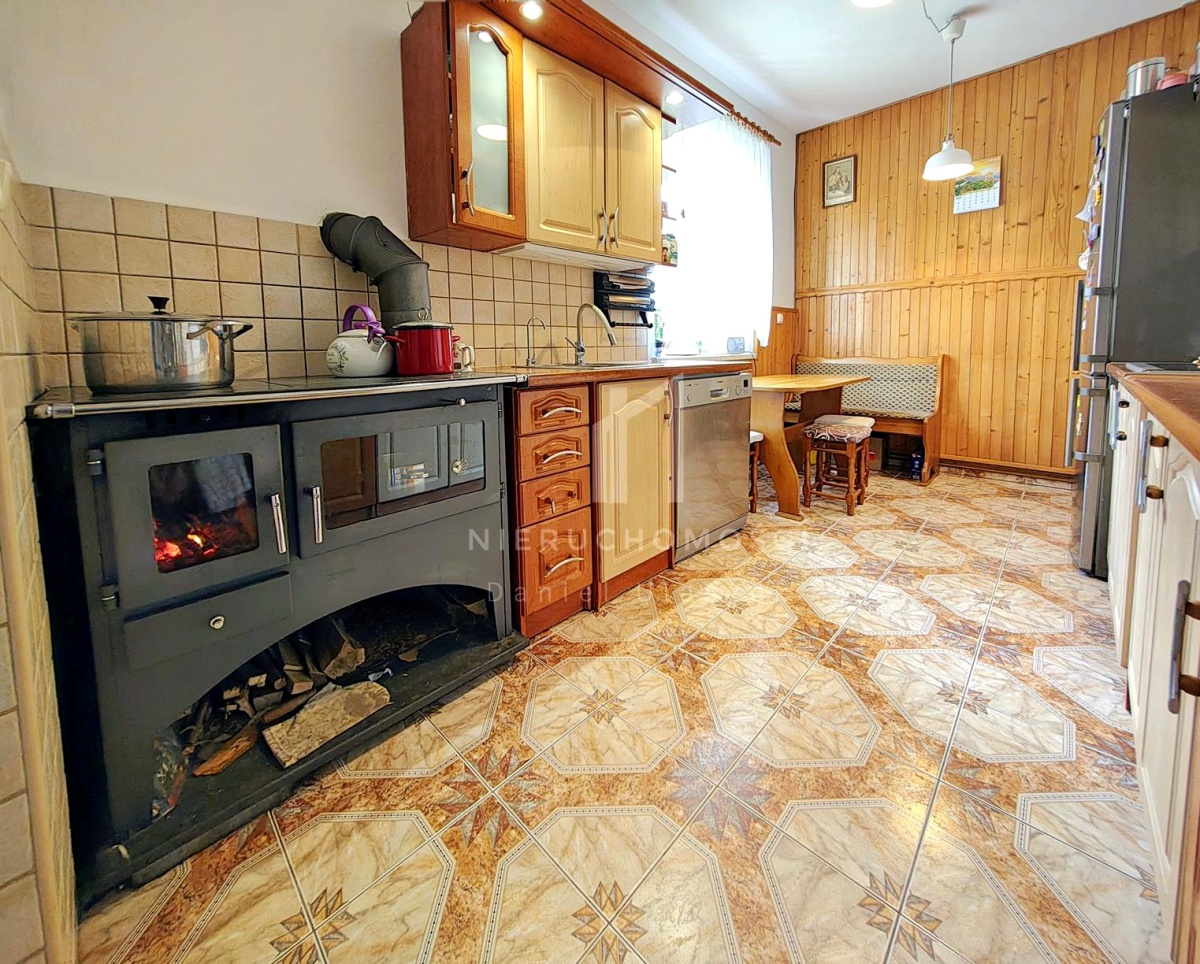 – klimatyczną kuchnię z pełnym wyposażeniem oraz charakterystycznym piecem kuchennym na drewno,