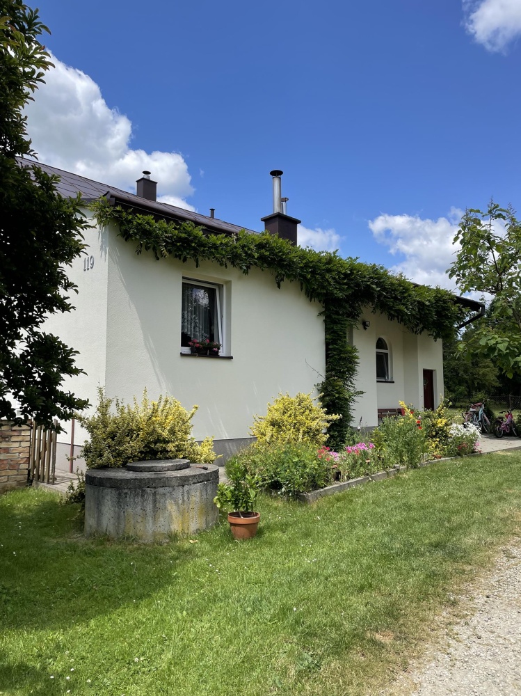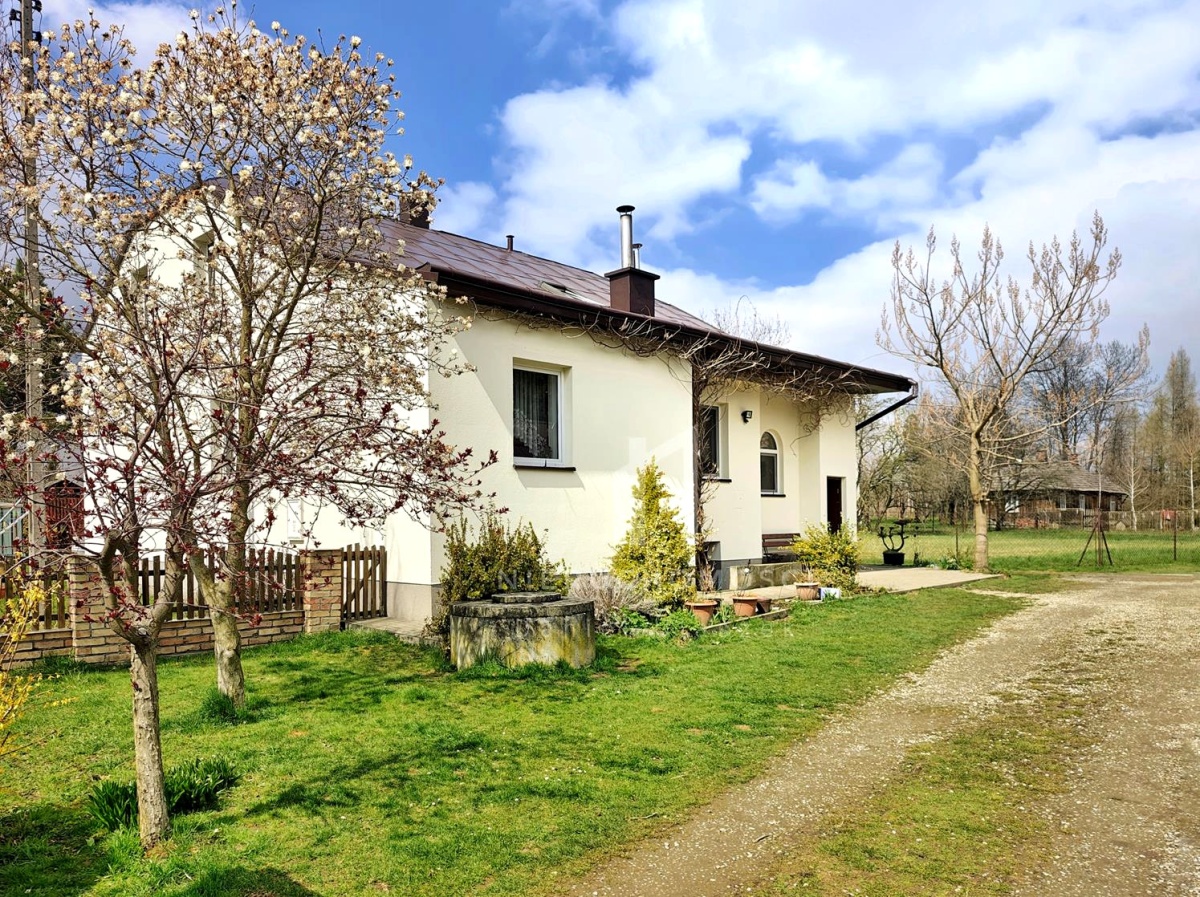 Z okien domu rozpościera się malowniczy widok na ogród z licznymi krzewami i drzewami ozdobnymi, a nieco dalej dostrzegamy ścianę lasu, a z drugiej strony otwarte pola – jednym słowem panuje tu sielankowy klimat zacisza natury.