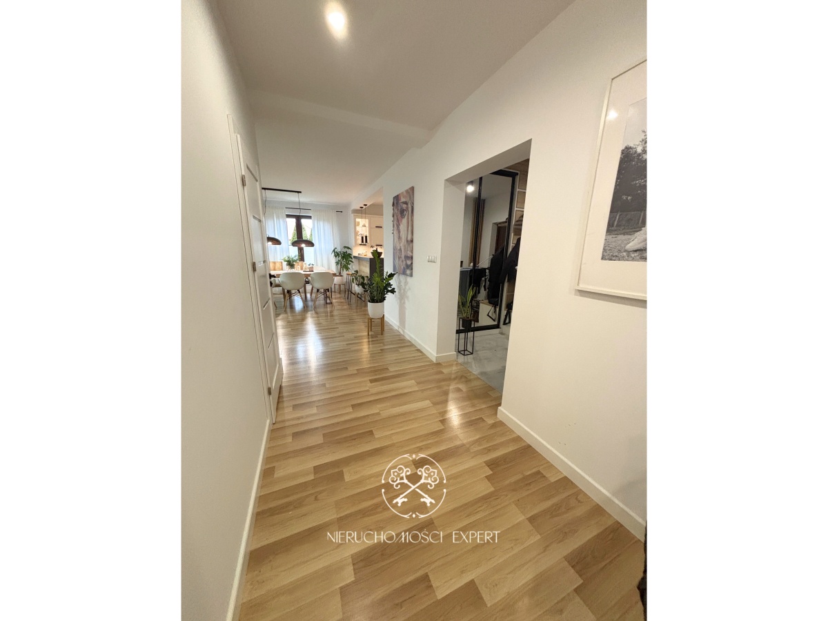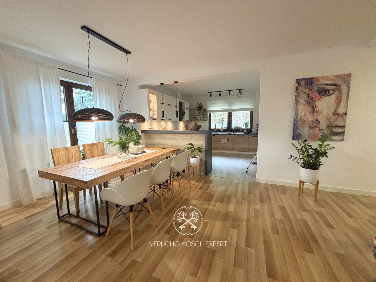 Dom został zaprojektowany i wykończony z dbałością o każdy detal. Wnętrza tworzą harmonijną, nowoczesną przestrzeń, w której funkcjonalność łączy się z estetyką. Wszystkie zabudowy meblowe wykonano na wymiar, a całość wyposażenia pozostaje w cenie nieruchomości.