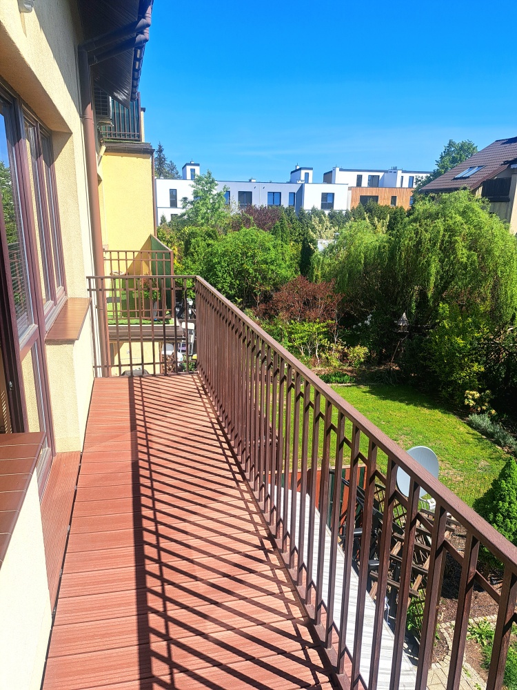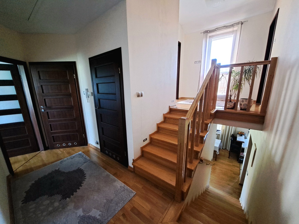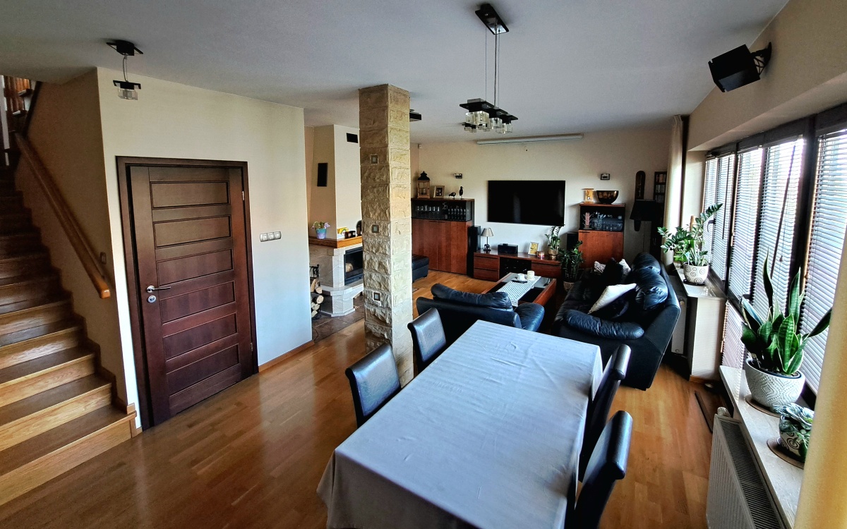 Wygodne i funkcjonalne mieszkanie w zabudowie szeregowej o łącznej powierzchni 141,15 m2, tarasem, balkonem, poddaszem, garażem w bryle budynki i drugim miejscem postojowym. Mieszkanie zlokalizowane jest wśród zieleni, w samym sercu Józefosławia, w sąsiedztwie domów jednorodzinnych i szeregowych, w pobliżu Lasu Kabackiego i Parku Kultury w Powsinie.