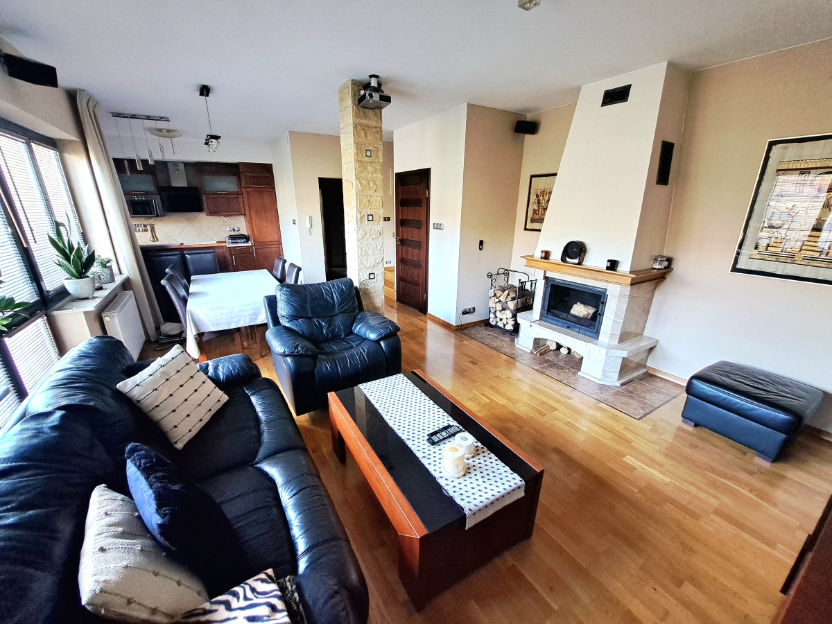 – przestronny salon z jadalnią i kuchnią (ok 33 m2), w salonie kominek, z salonu wyjście na balkon (ok 6 m2)