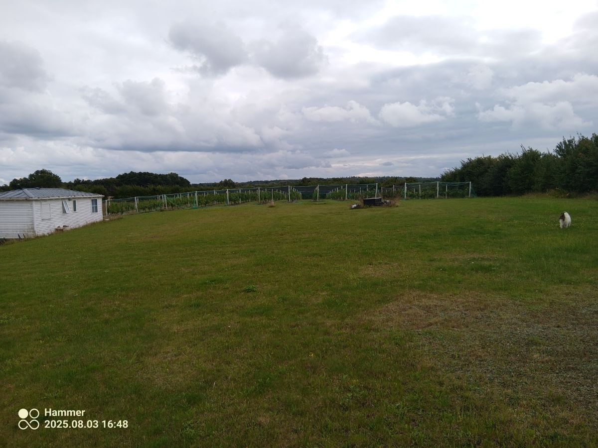 Sprzedam atrakcyjną działkę z linią brzegową jeziora-prywatną plaża i małą winnicą.Działka 1.25 ha.Około 35m bezpośredniego dostępu do jeziora(72.5 ha/max.głębokość 11m) i około 70 m dostępu przez skarpę nadbrzeżną. Możliwość uprawniania sportów wodnych/pływania w kameralnych okolicznościach przyrody. Działka obsiana trawą.Sąsiednie tereny uprawiane rolniczo-pszenica,żyto,rzepak.