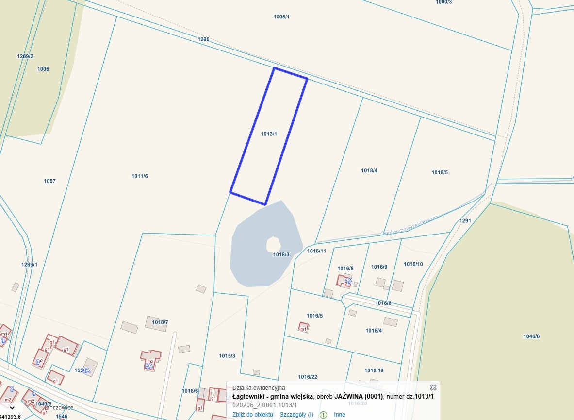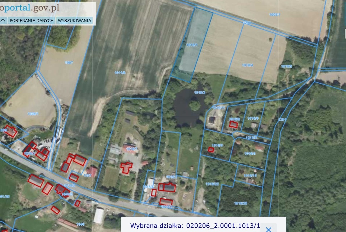Nieruchomość składa się z działki gruntu nr 1013/1 AM-4 o pow. 0,3000 ha, położona jest w otoczeniu gruntów użytkowanych rolniczo, stawu oraz rozproszonej zabudowy mieszkaniowej i zagrodowej. Najbliższa zabudowa w odległości ok. 100 m. Dojazd drogą gminną gruntową (dz. nr 1290). Działka ma kształt regularny (prostokąt). Ukształtowanie terenu: ze spadkiem w kierunku południowy. Część działki wykorzystywana jako ogród przydomowy, część jako uprawa rolna.