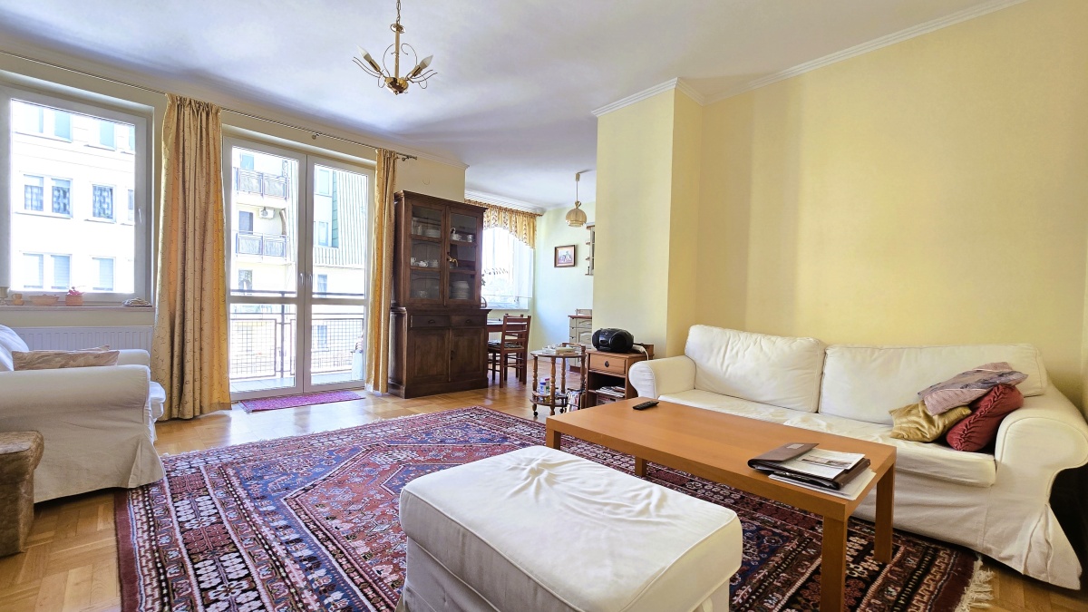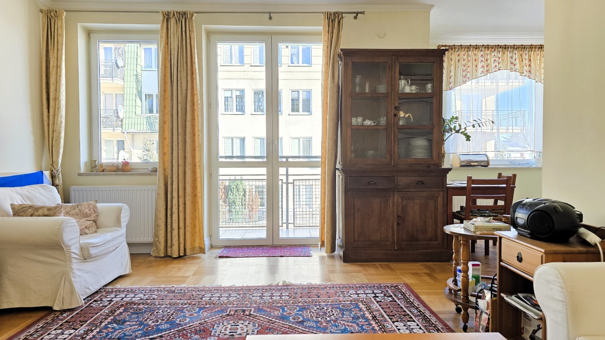 salon z wyjściem na balkon