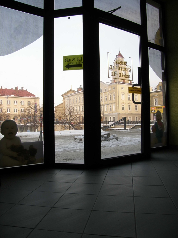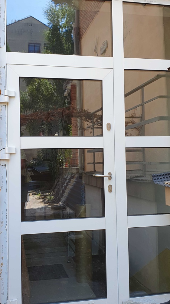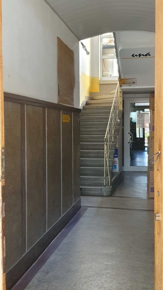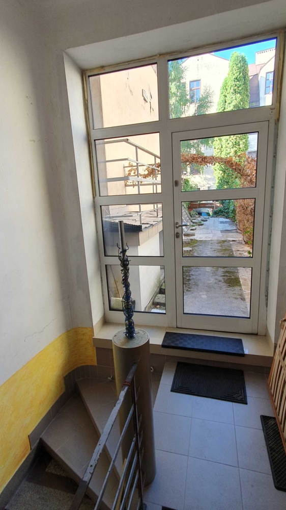 * Układ: przestronne pomieszczenie biurowo-usługowe z dużą aluminiową witryną (szyby P4), hol wejściowy, dodatkowe biuro na tyłach oraz półpiętro.