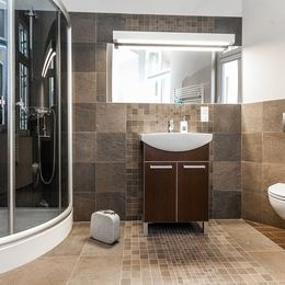 Kabina prysznicowa,umywalka z szafką,toaleta,suszarka na ubrania,pralka,kosz na pranie,szafka wisząca na kosmetyki