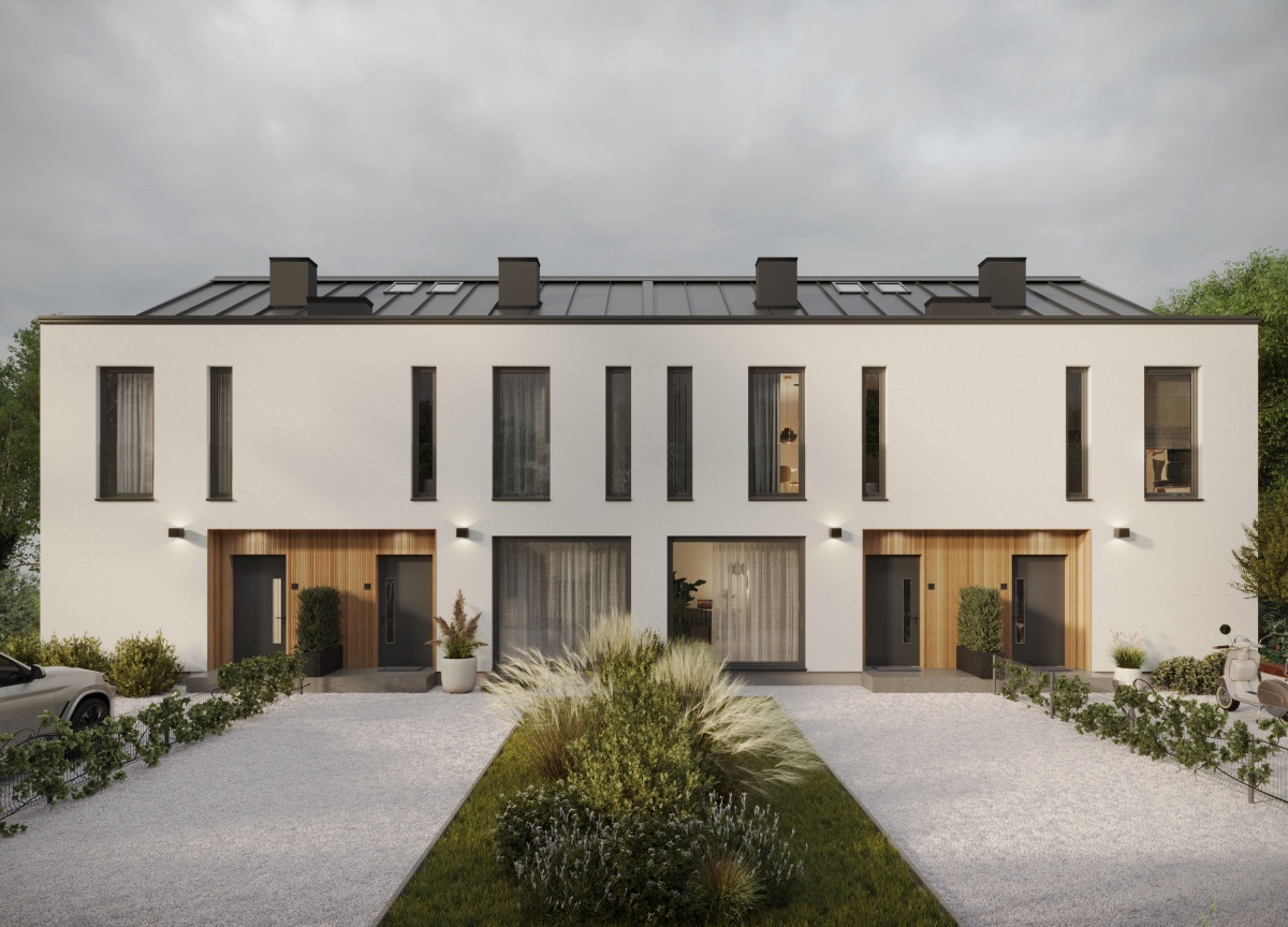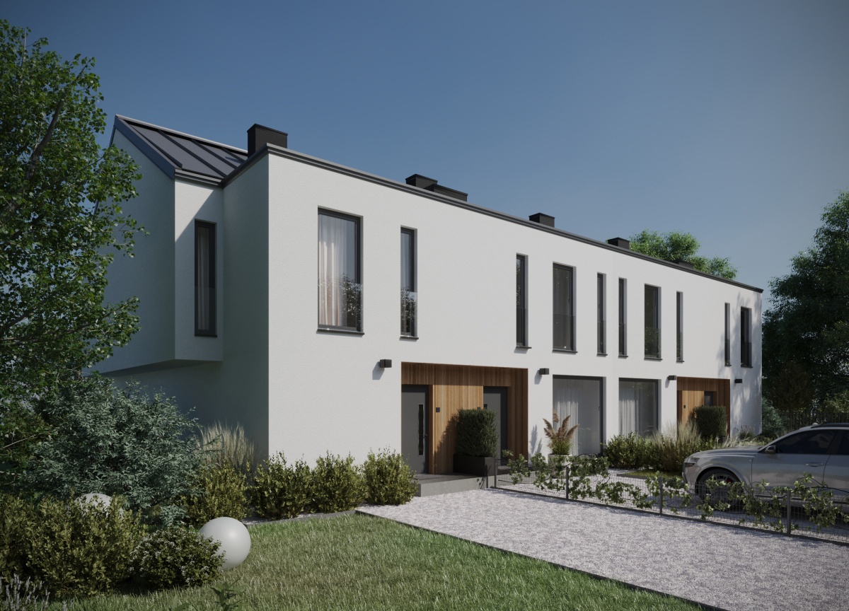 Każdy lokal posiada niezależny wjazd z furtką, miejsce parkingowe oraz ogrodzony ogród.