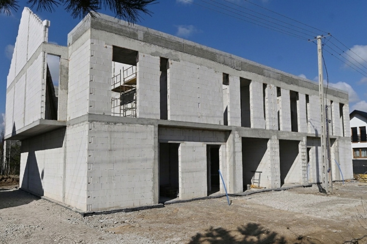 Budujemy z solidnych, sprawdzonych materiałów, w trwałej tradycyjnej technologii murowanej i żelbetowej. Dach skośny w konstrukcji drewnianej, na fragmentach stropodach żelbetowy z zielenią.