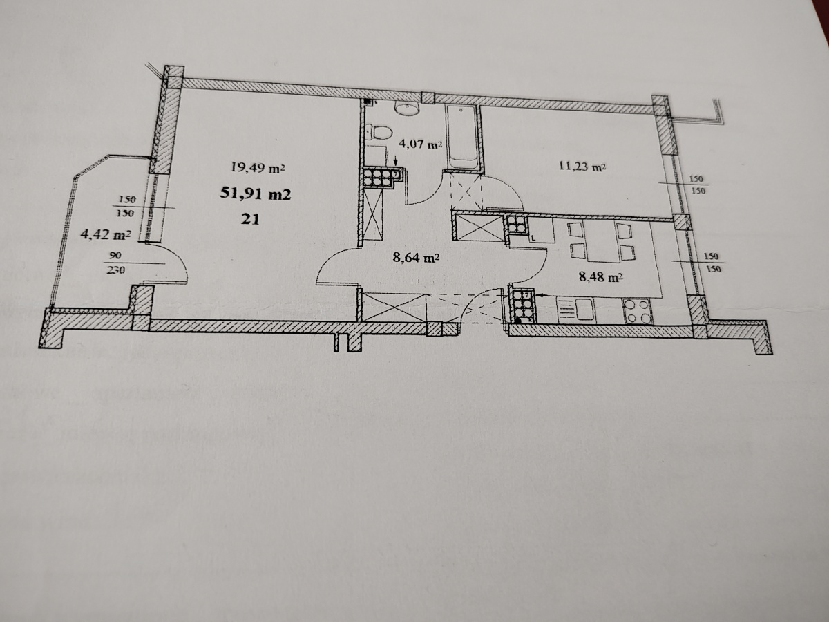 Powierzchnia pomieszczeń: salon 19,5m2, sypialnia 11,2 m2, kuchnia 8,5m2, łazienka 4m2, przedpokój 8,6m2. Na podłogach w pokojach parkiet, w pozostałych pomieszczeniach terakota.