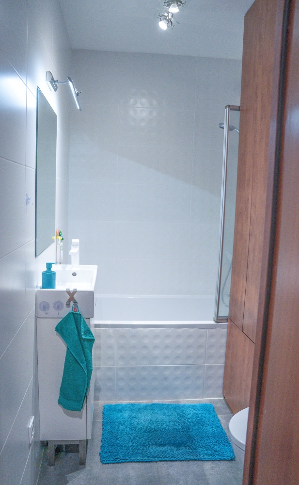 • Wanna z parawanem – możliwość kąpieli lub prysznica.