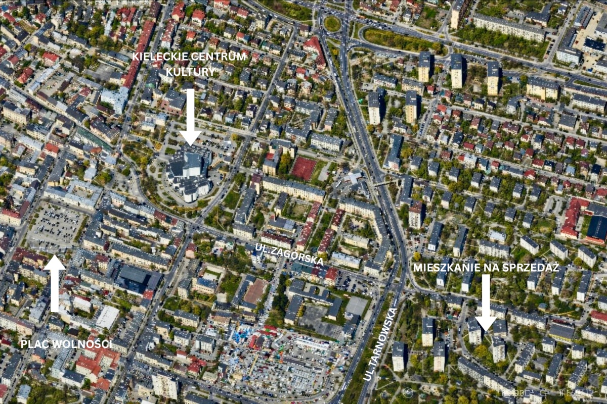 Mieszkanie znajduje się w bardzo dobrze skomunikowanej części miasta. Lokalizacja zapewnia szybki dostęp do ścisłego centrum Kielc oraz Uniwersytetu Jana Kochanowskiego (UJK).