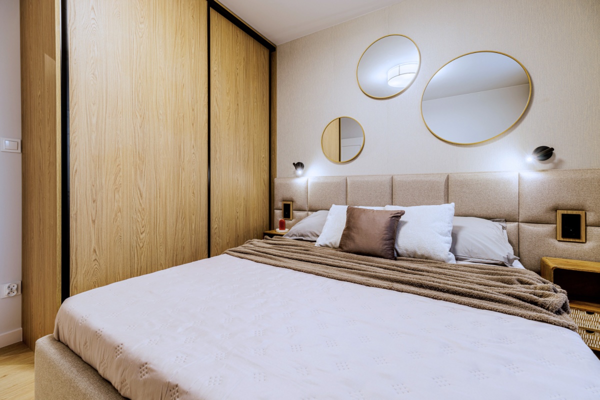 Sypialnia jest przestronna i posiada pojemną szafę na Twoje ubrania.