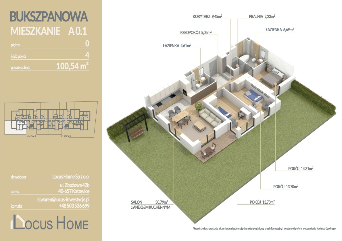 Spółka LOCUS HOME to DEWELOPER który realizuje inwestycje mieszkaniowe na terenie Katowic od wielu lat. NOWA inwestycja na ulicy BUKSZPANOWEJ (obok nr 19) w Piotrowicach to nowoczesny apartamentowiec w doskonałej lokalizacji Katowic.