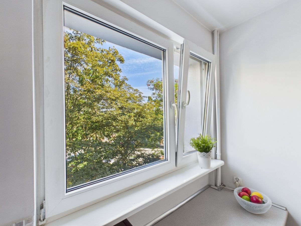 Mieszkanie znajduje się na 2. piętrze w zadbanym, 4-piętrowym budynku z lat 70. Klatka schodowa jest świeżo po remoncie. Do lokalu przynależy piwnica, a dodatkowym atutem są: balkon francuski, okna PCV oraz drzwi antywłamaniowe Gerda.