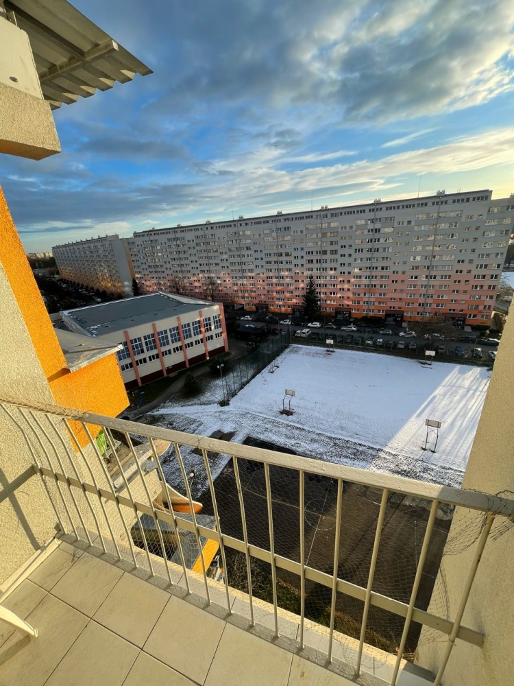 Mieszkanie jest w bardzo dobrym stanie, kuchnia i łazienka świeżo po remoncie. Można od razu się do niego wprowadzić, gdyż w cenie mieszkania zostają wszystkie meble, sprzęty agd, wyposażenie, 2 telewizory, a nawet naczynia i garnki kuchenne. Łazienka znajdująca się na wprost wejścia,posiada wannę oraz wc. Z mniejszego ok.9 m pokoju po lewej stronie wychodzi się na balkon/loggie, natomiast z większego ok 13 m pokoju po prawej str przechodzi się do ok. 3m kuchni. W pokojach oraz przedpokoju na podłodze położony jest parkiet drewniany w bardzo dobrym stanie. Okna lokalu wychodzą na stronę południową, dzięki czemu mieszkanie jest jasne i słoneczne. Posiada centralne ogrzewanie, gaz, rolety antywłamaniowe, parking zamykany szlabanem na pilota. Znajduje się na 10 piętrze z windą, ale powyżej jest jeszcze piętro z suszarniami, które izoluje mieszkanie od dachu. W mieszkaniu mieszkały osoby niepalące i dbające o czystość.
