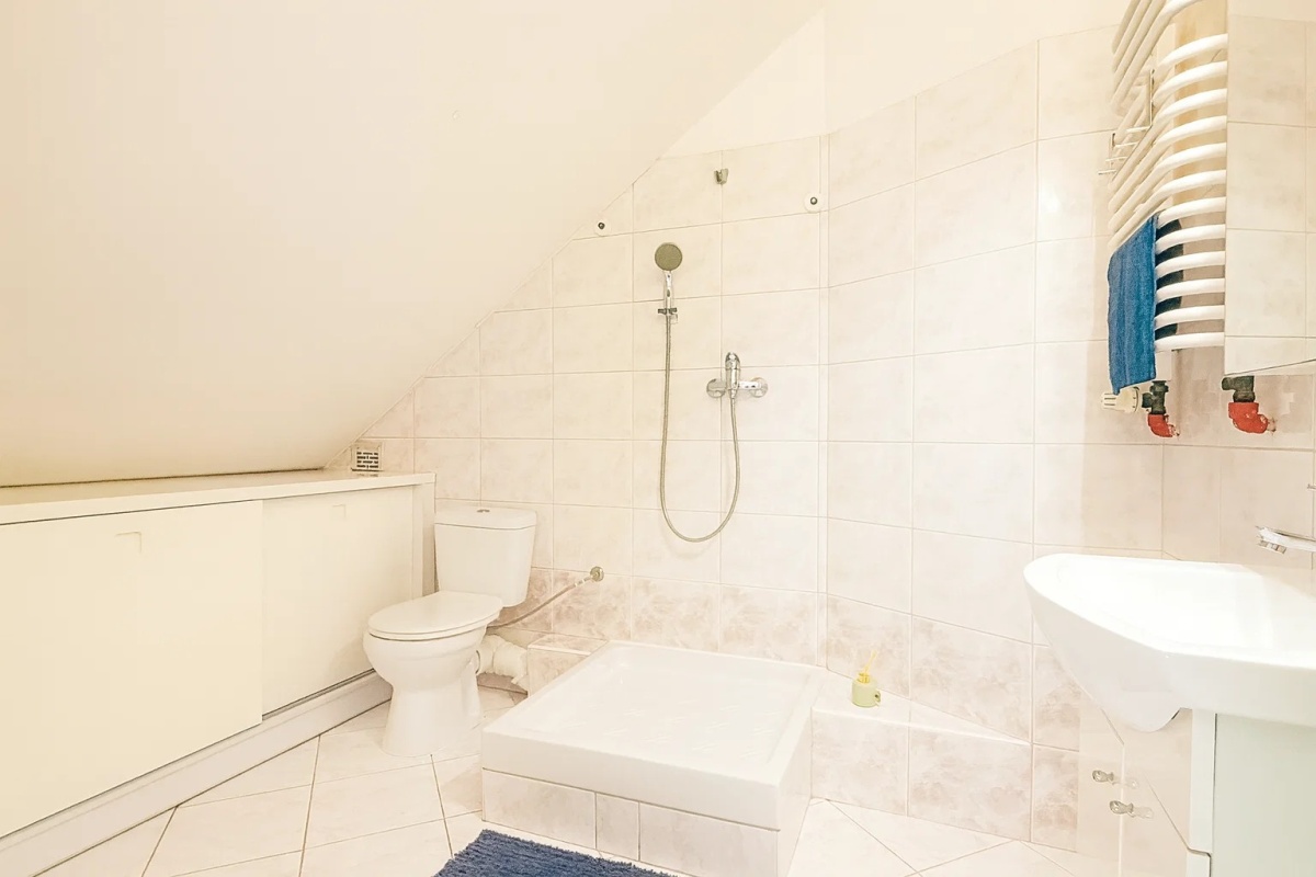 – druga łazienka (ok. 6 m2) z prysznicem, co zdecydowanie zwiększa wygodę użytkowania przestrzeni.