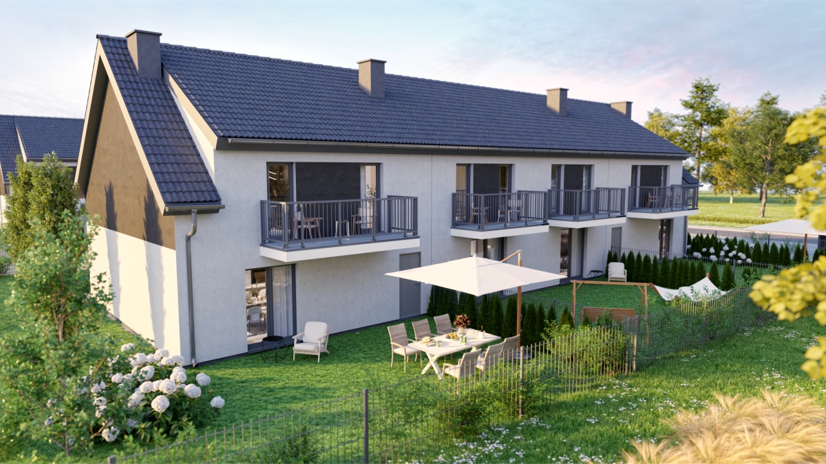 Mieszkania z garażami i dużymi ogrodami dostępne będą w następnym etapie sprzedaży.