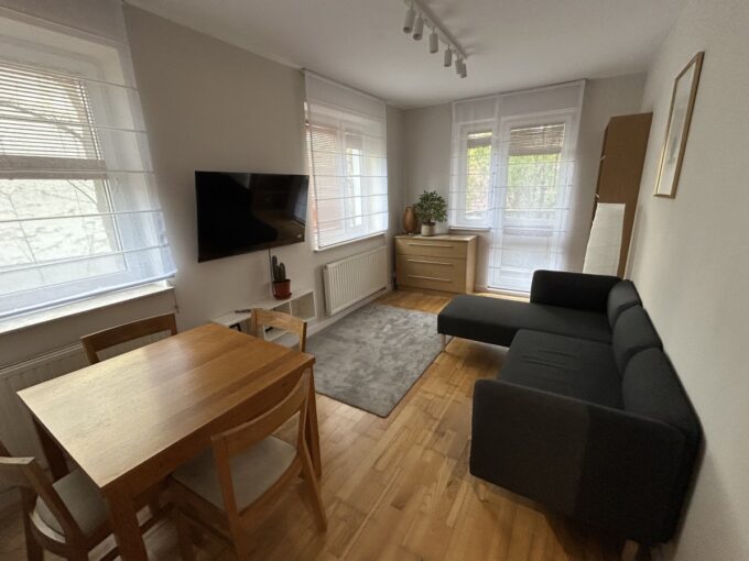 Mieszkanie zlokalizowane jest w ścisłym centrum Lęborka, w bocznej, zacisznej ulicy. W odległości 100 m od mieszkania znajdują się: rynek (targowisko miejskie), sklep Netto i szpital, a do starówki jest 6 min. pieszo. Do najbliższej szkoły podstawowej – 750 m, do przedszkola – 450 m. Przychodnia jest na dole budynku, w którym jest mieszkanie.