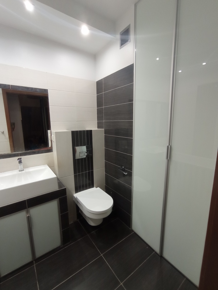 Zabudowa: Duża szafa z lustrem w przedpokoju oraz druga szafa w sypialni.