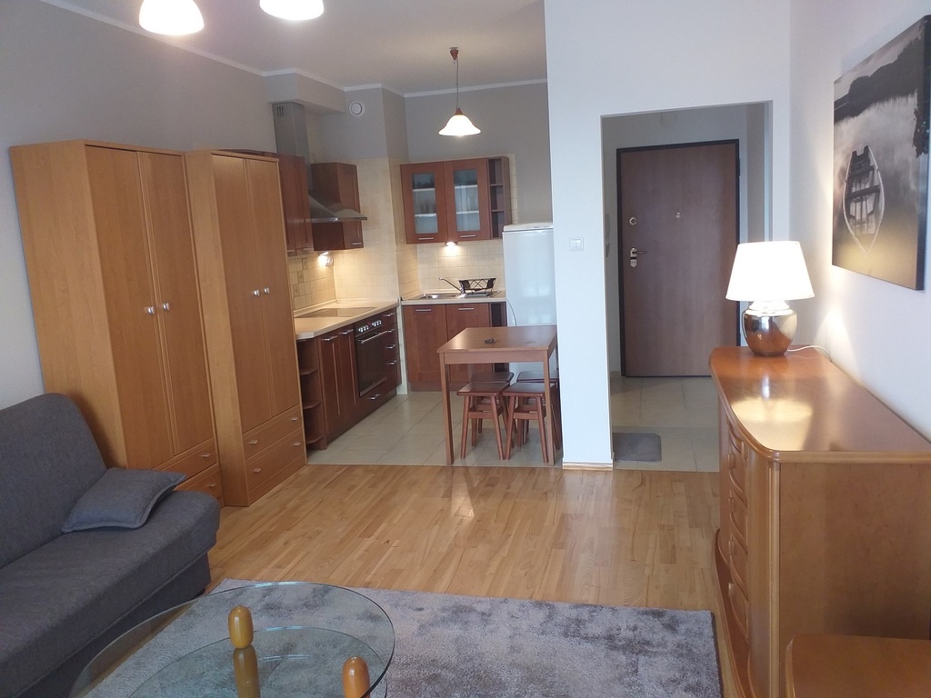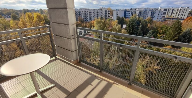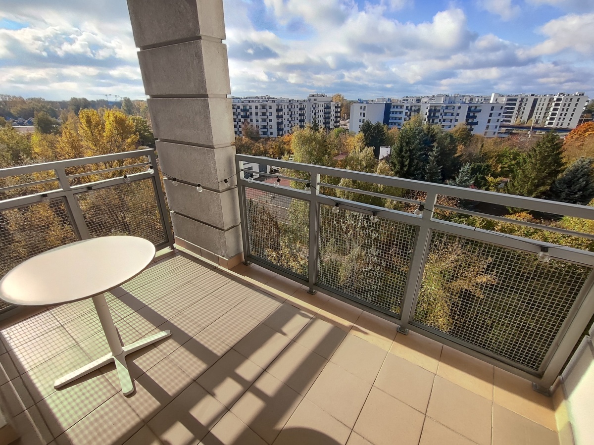 Wynajmę bardzo ładne, słoneczne dwupokojowe mieszkanie o pow. 45 m2 znajdujące się na 6 piętrze w 8 piętrowym budynku z windą ( nowe budownictwo) na terenie zamkniętego i chronionego 24 h osiedla przy Parku Szczęśliwickim na Włodarzewskiej 87. Bardzo dobra infrastruktura potrzebna do wygodnego i spokojnego życia znajduje się w bezpośrednim sąsiedztwie osiedla (działający przez cały rok kompleks sportowo rekreacyjny posiada nie tylko stok narciarski, ale również odkryte baseny, jeziorka, rolkowisko czy zielone błonie. Łatwy dojazd do centrum, blisko al. Jerozolimskich i ul. Grójeckiej. Mieszkanie zostało odnowione, sypialnia wyposażona w nowe meble. Na podłogach w pokojach położony jest parkiet jesion a w przedpokoju, łazience i kuchni terakota. Na jego powierzchnię składają się z: salon połączony z aneksem kuchennym hol, sypialnia, łazienka z wanną i duży balkon, z którego rozpościera się wspaniały, niczym nieograniczony widok. Mieszkanie jest całkowicie umeblowane i wyposażone w sprzęt agd (kuchnia, kuchenka mikrofalowa, okap, lodówka), 2 szafy wnękowe (w holu i sypialni), zabudowa w pomieszczeniu gospodarczym. W mieszkaniu znajduje się wideofon.