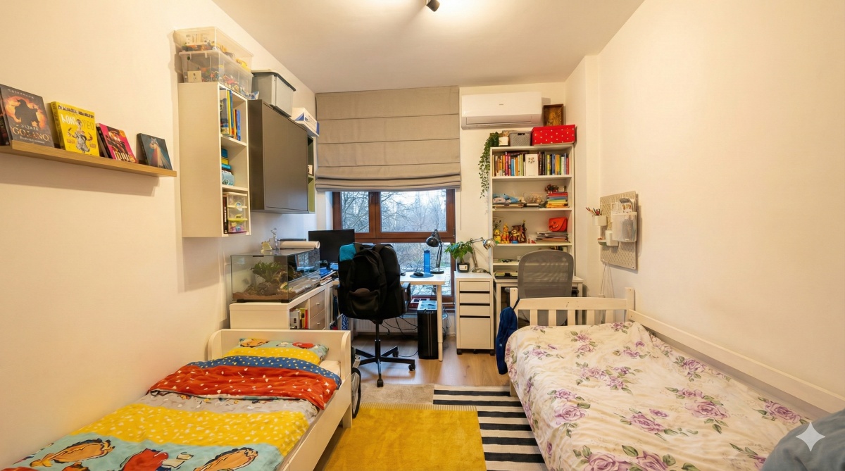• Sypialnia: Ustawna, również wyposażona w jednostkę klimatyzacji.